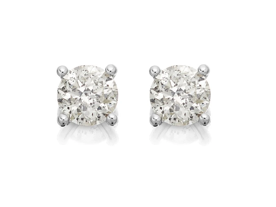 Impressive diamond solitaire stud earrings set in 18ct white gold – elegant, timeless and perfect for any jewellery collection. Two matched, 40pt round brilliant cut diamonds are set within four claws that adds light and consequently just the right degree of sparkle. Finished with 18ct white gold butterfly backs, 80pts (0.8ct) total diamond weight for the pair.