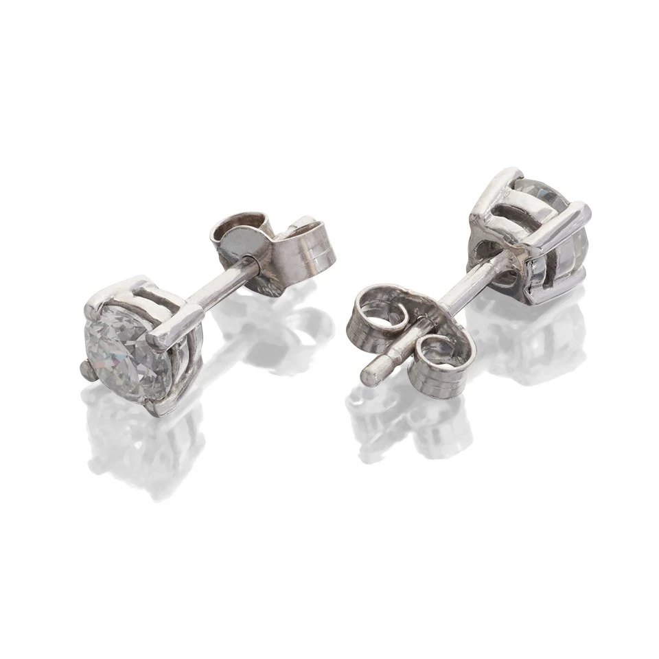 The two ound brilliant cut diamonds set into these 18ct white gold solitaire stud earrings are independently graded by the Birmingham Assay Office as colour G-H and clarity SI2. Each stone is personally selected by Andrew Hinds FGA and matched face up to come together as a visually matched pair. Once certificated these are then set by goldsmiths in our UK workshop.