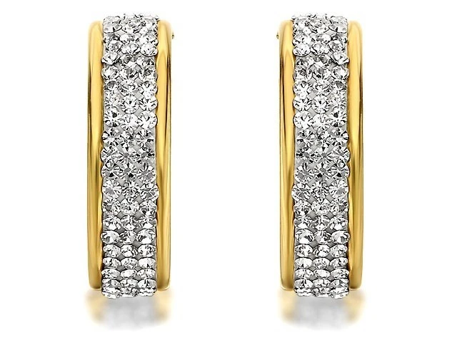 Curling closely around the ear, these 5mm wide half hoop earrings sparkle with three rows of crystals. Approximate size 5 x 16mm. To keep this piece of jewellery looking beautiful, we recommend you remove it before showering and swimming. Full care information can be found here.