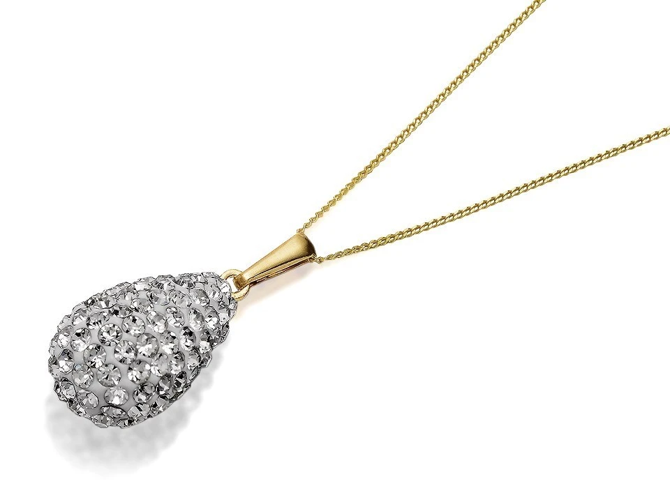 Entirely covered with crystals, this 9mm teardrop pendant packs a powerful sparkle, strung from an 18″/45.5cm fine chain. To keep this piece of jewellery looking beautiful, we recommend you remove it before showering and swimming. Full care information can be found here.