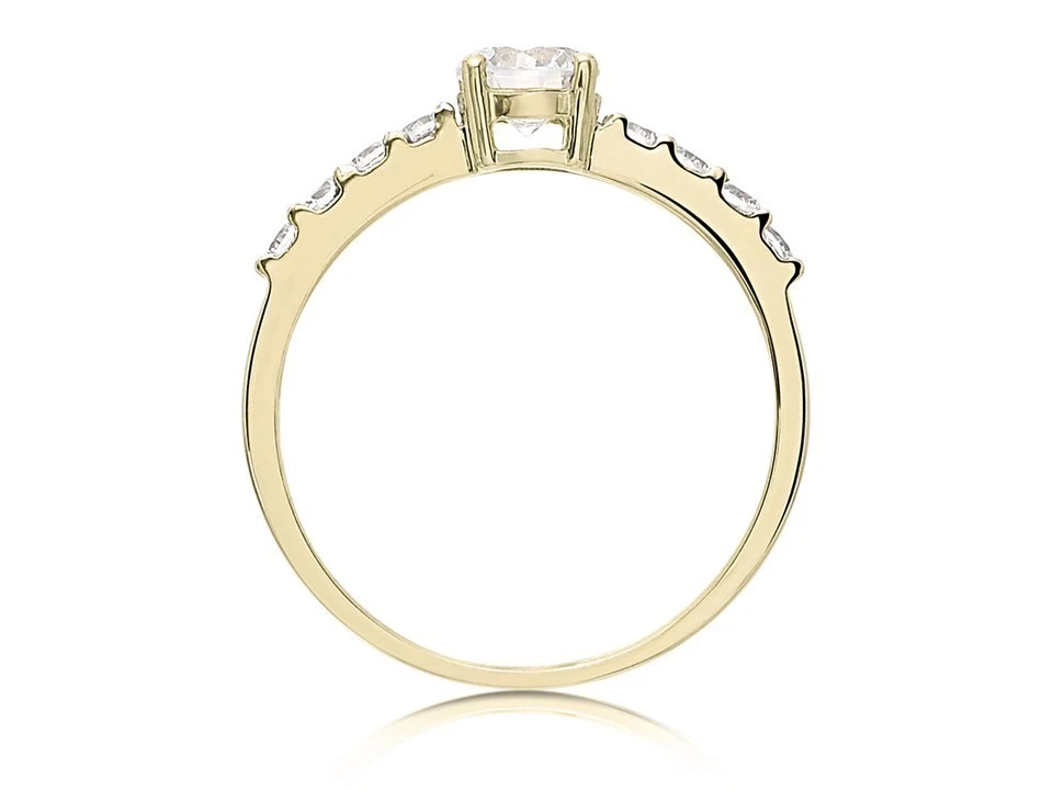 A very pretty and classic solitaire cubic zirconia ring. The sparkling centre stone measures approximately 5mm wide and is flanked by four more cubic zirconia’s set into each shoulder.