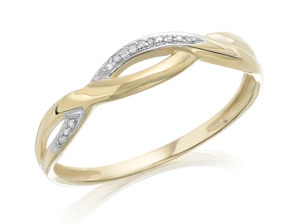 Two strands of gold for this 4mm open wave ring, one set with diamond accents. Very pretty, looks lovely on the finger. Exclusive to F.Hinds in the U.K.