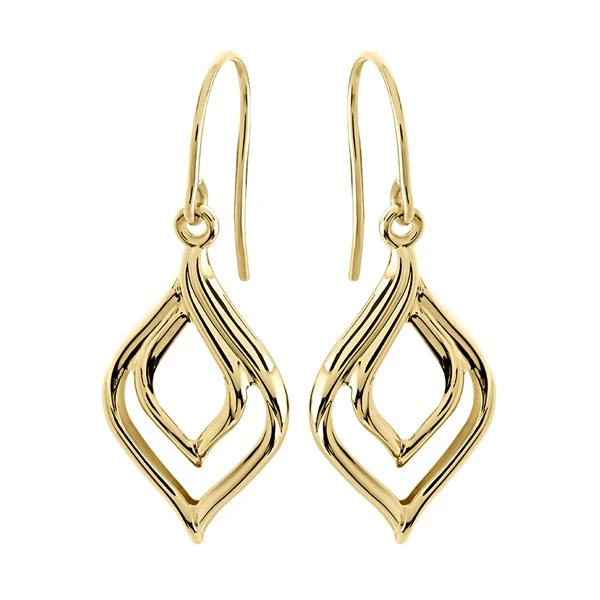 These fashionable 9ct gold hook wire drop earrings feature a double teardrop design. Total drop 33mm.