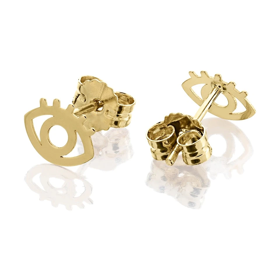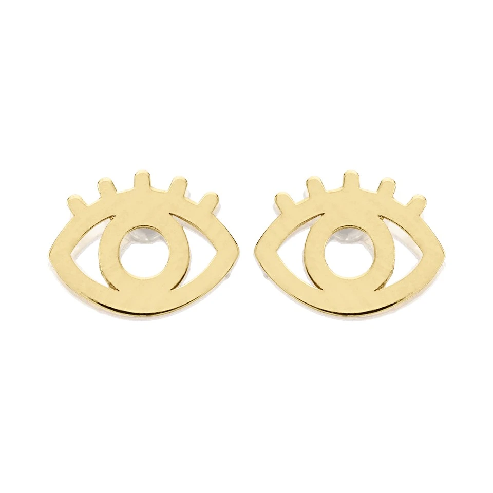 Featuring an unusual evil eye design, these 6mm wide 9ct gold stud earrings will make an interesting gift option. Secured with 9ct gold butterfly backs.