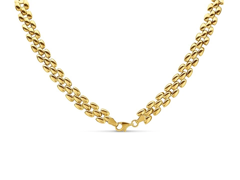 Make a statement with this 9ct gold fancy 16in/41cm chain. Featuring three oval link rows and finished with a karab clasp, this is a fabulous gift option to complete any outfit.