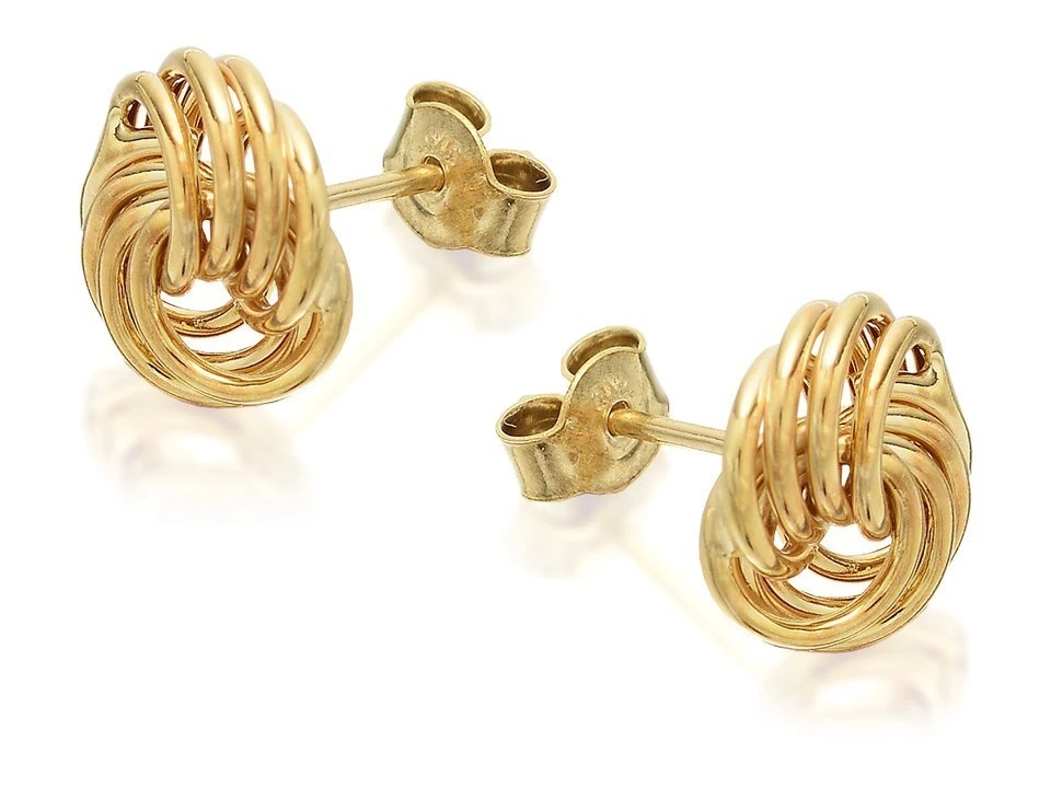 Four stands for each half of this double knot create these 9mm wide 9ct gold earrings – a style that’s ideal day or evening.