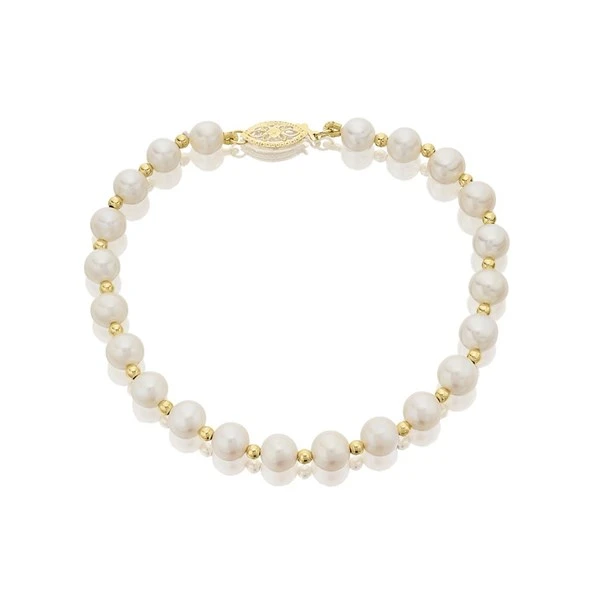 A lovely 7.5in/19cm freshwater cultured pearl and 9ct gold bead bracelet – a classic jewellery piece for every wardrobe. 6mm pearls and finished with a 9ct gold clasp.