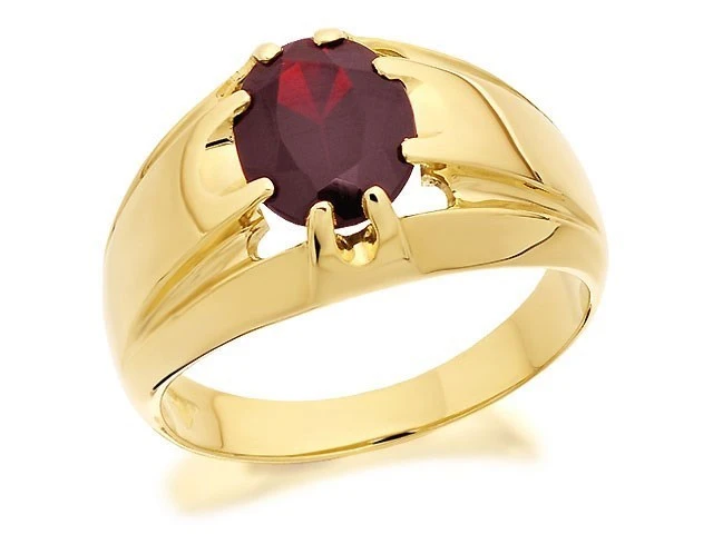 Owning a red garnet is thought to provide the wearer with health, good fortune and calm, so consequently this garnet signet ring would make the perfect gift. A 10 x 8mm garnet is set within an attractive eight claw gold setting. Exclusive to F.Hinds in the U.K.