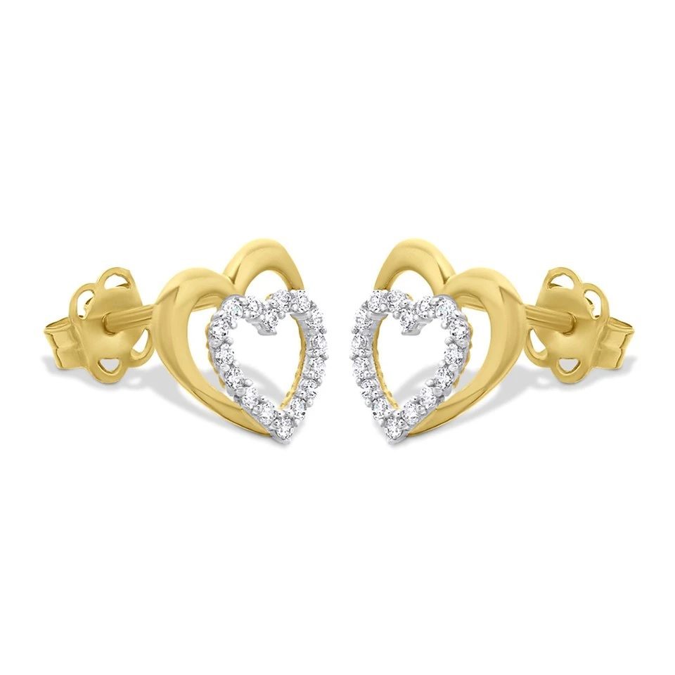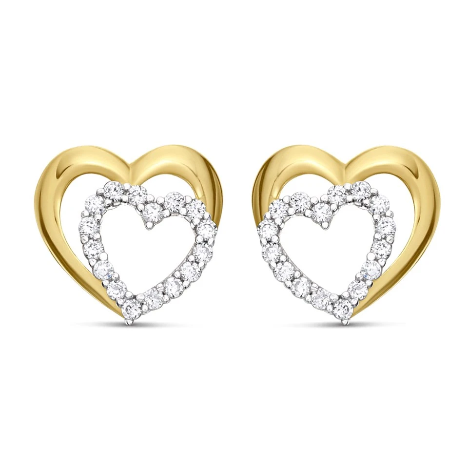 Perfect as a gift for the one you love, these pretty 9ct gold heart stud earrings feature two intertwined hearts, one set with sparkly cubic zirconias. Measuring 8mm and finished with a butterfly fitting.