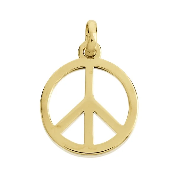 A modern 12mm wide 9ct gold peace charm suitable for a bracelet or strung from a chain.