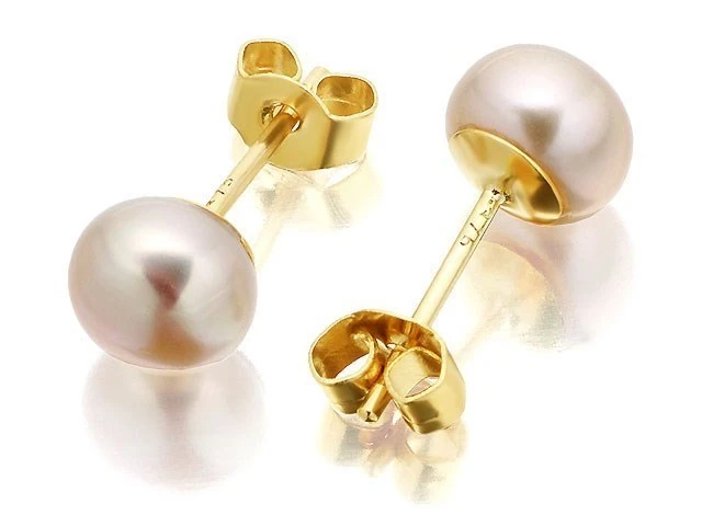 Classic pink hued freshwater 6mm, cultured pearls on a 9ct gold post with a butterfly fixing. Please note, as they are naturally produced, the pink colour may vary.