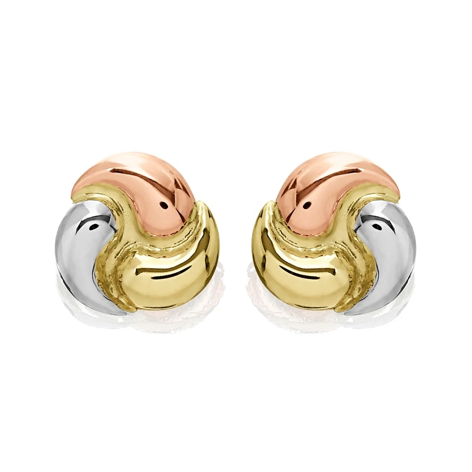 These attractive 7mm 9ct gold stud earrings have three colour swirls and are secured with a butterfly fitting.