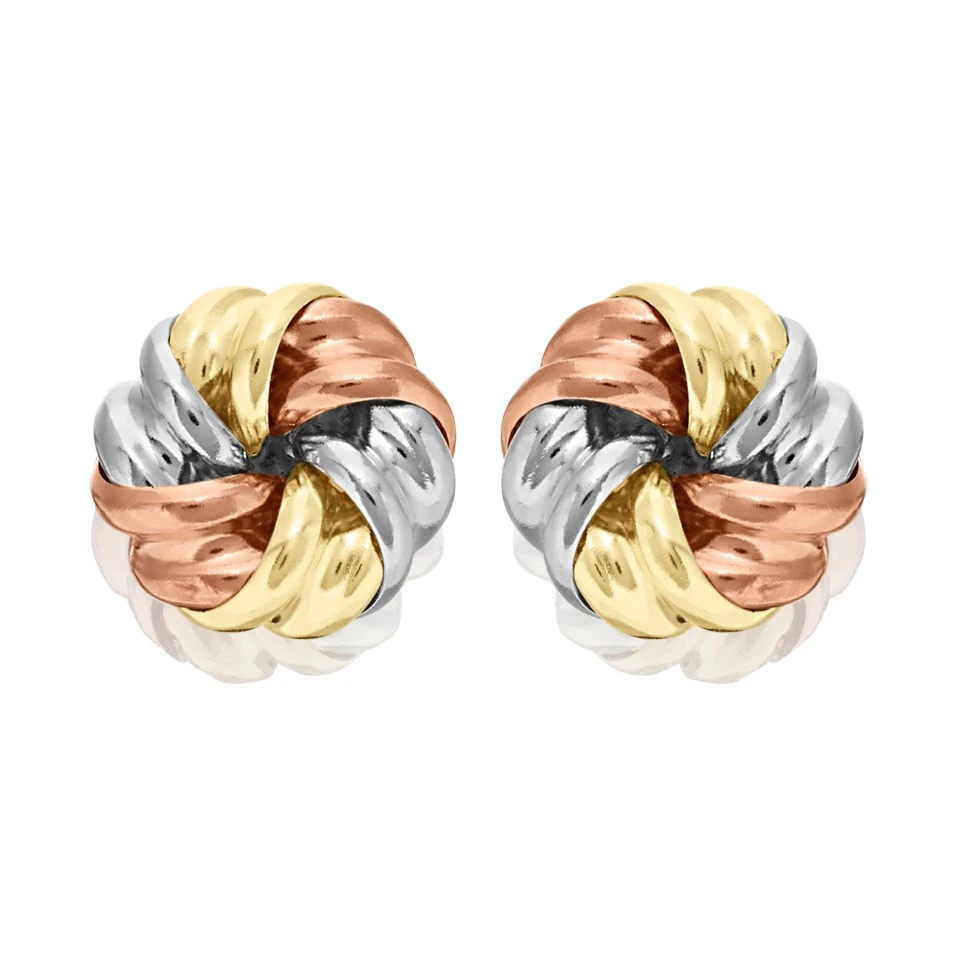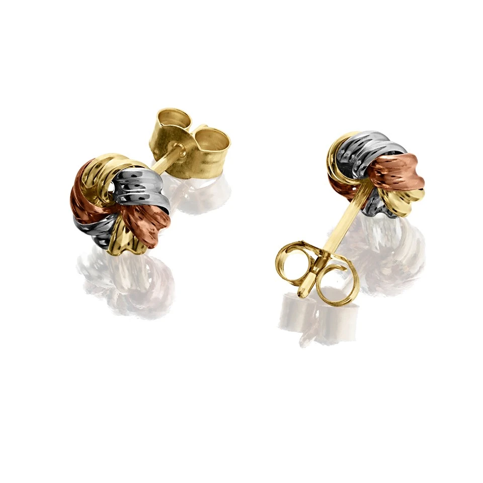Featuring three gold tones, these 9ct gold twist stud earrings will add style to your jewellery collection. Secured with butterfly fittings, 6mm wide.