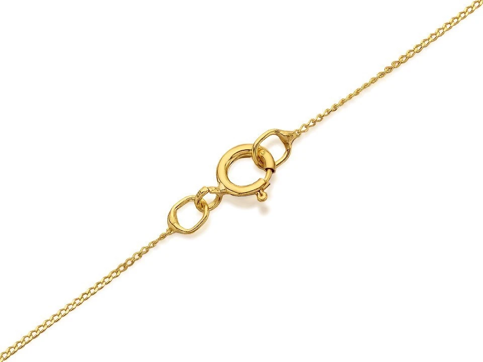 A pair of pretty heart-shaped blue topazes nestle within the 16mm outline heart, with diamond accents around the white coloured edge, strung from an 18″/45.5cm yellow gold chain. Such a romantic message.
