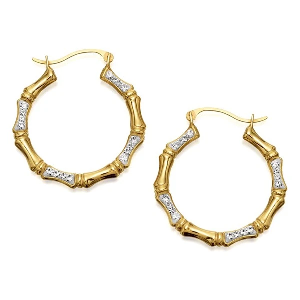 Be the first to review “9ct Gold Two Colour Crystal Bamboo Hoop Earrings – 24mm – G2429” Cancel reply