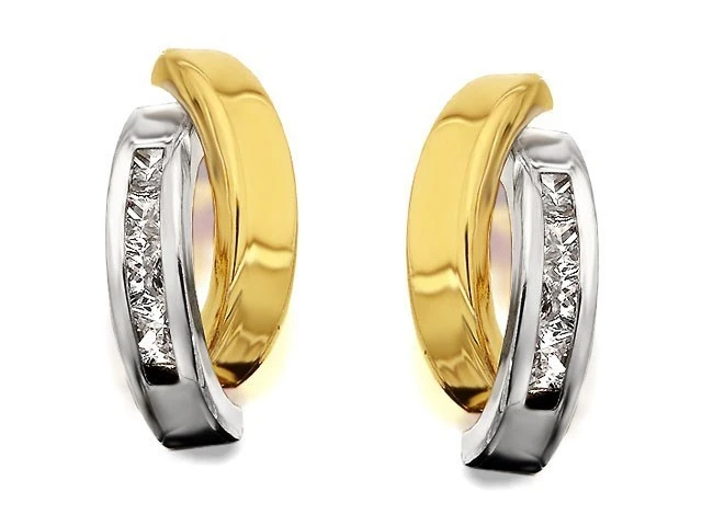 At 5 x 10mm they might be little but they are beautifully designed. One strand is channel set with sparkling princess cut cubic zirconias, whilst the other strand remains plain and polished – perfect. Finished with secure yellow gold butterfly backs.