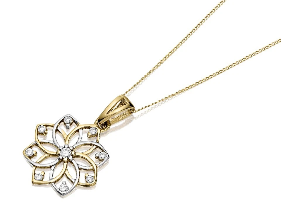 Be the first to review “9ct Gold Two Colour Cubic Zirconia Flower Necklace – R6976” Cancel reply
