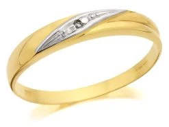 A simply styled 3mm band ring with a crossover face set with a diamond accent and a white finish.