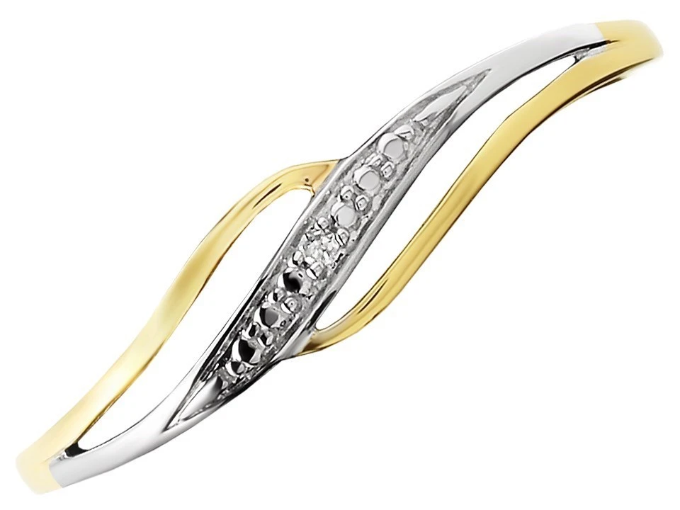 This dainty gold ring boasts three, 1mm wide strands; the centre rhodium plated to be white, with a small diamond set in the centre. Only available in selected sizes.