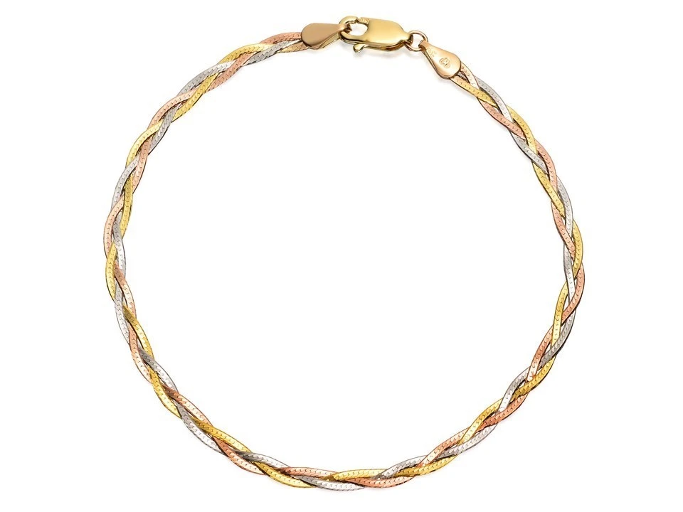 Be the first to review “9ct Three Colour Gold 2.5mm Wide Plaited Herringbone Bracelet – 7.5in – G8007” Cancel reply