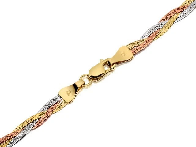 Be the first to review “9ct Three Colour Gold 3mm Wide Plaited Herringbone Necklet – 17in – R9509” Cancel reply