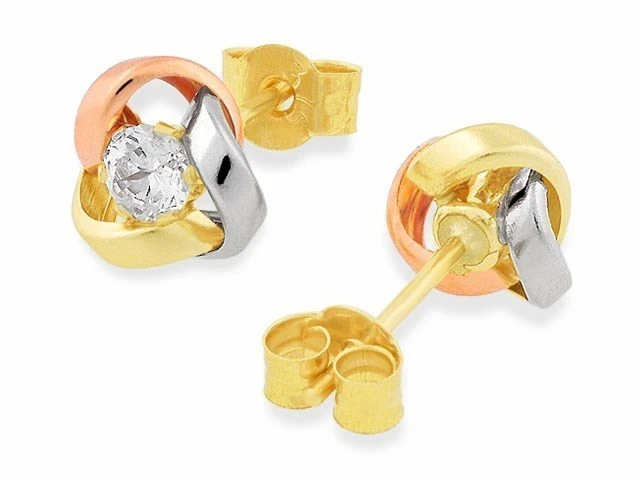 Be the first to review “9ct Three Colour Gold Cubic Zirconia Knot Earrings – 7mm – G4615” Cancel reply