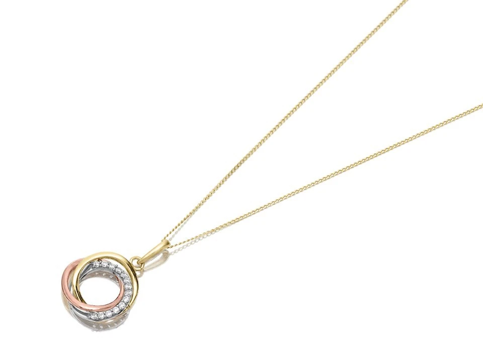 Be the first to review “9ct Three Colour Gold Cubic Zirconia Knot Necklace – R6975” Cancel reply