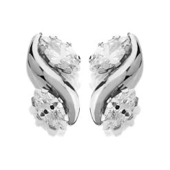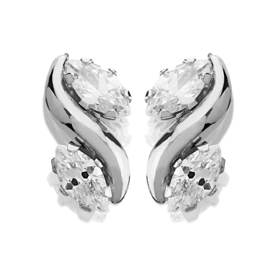 Set with two marquise cut cubic zirconias, these 7mm long 9ct white gold stud earrings have a twist design to create a modern look. Secured with white gold butterfly backs.