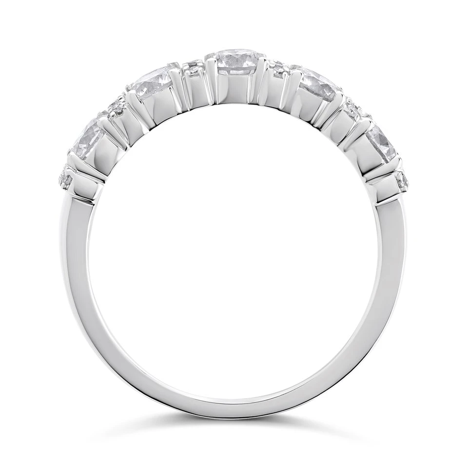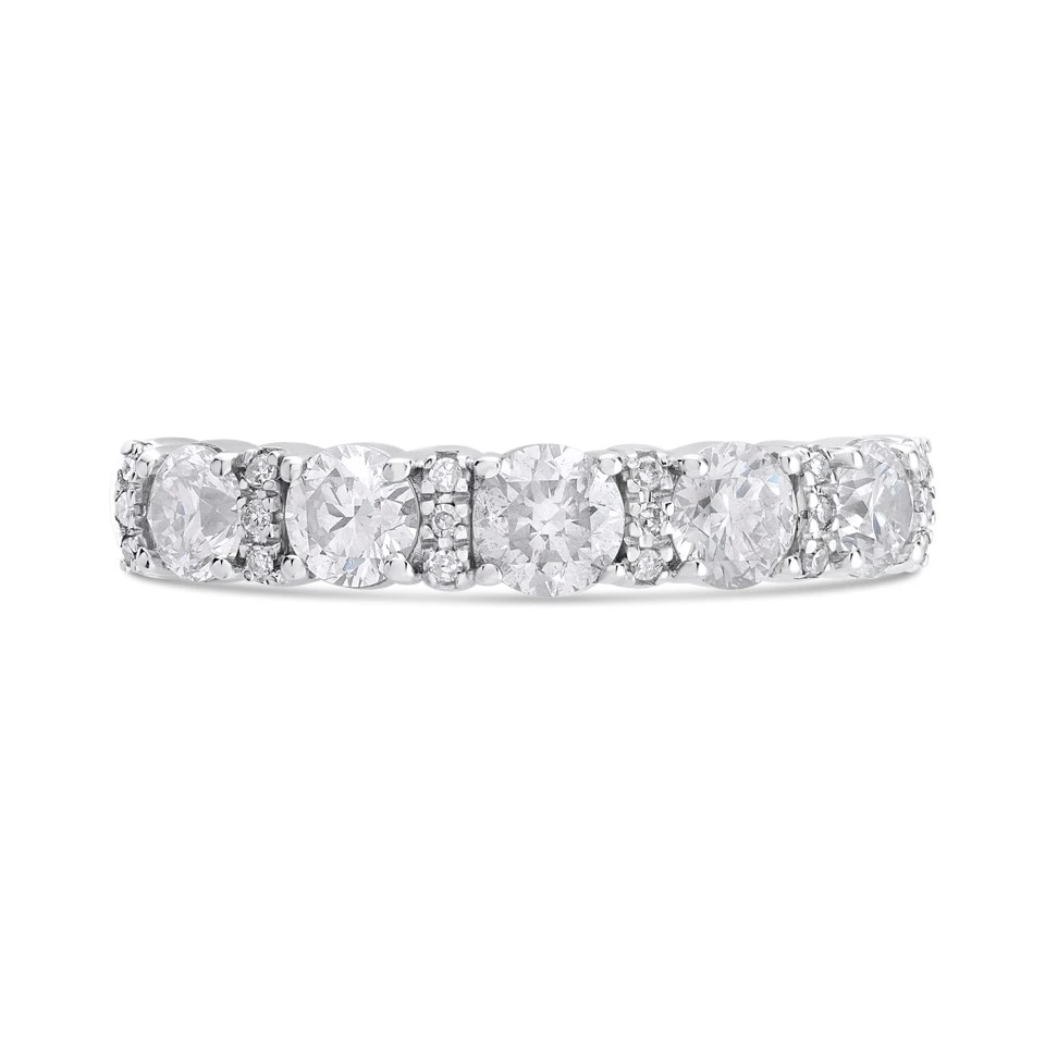 With diamonds spanning approximately 20mm across the finger, this white gold diamond band ring features five larger round brilliant cut diamonds alternating with three vertcially set samller diamonds to create this unusual but stunning design. With an impressive 1 carat of sparkling diamonds, it measures roughly 4mm wide and looks superb when worn.