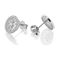 Silver Cubic Zirconia Halo Flower Stud Earrings – 10mm – F04039