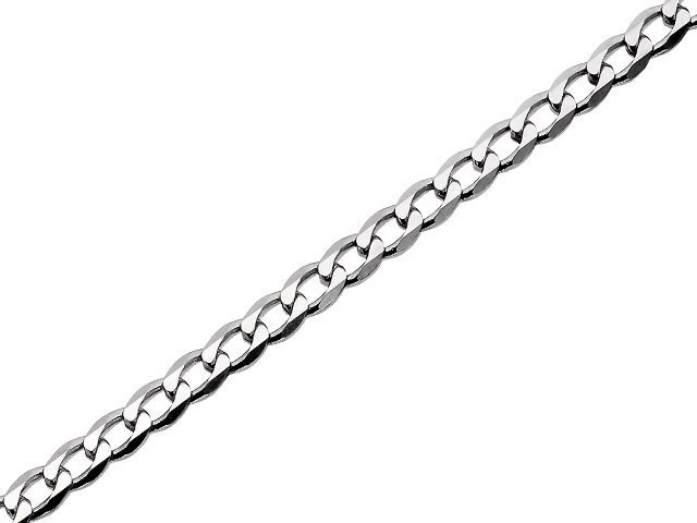 A 9ct white gold solid flat link curb chain measuring 18″/45.5cm x 2mm wide.