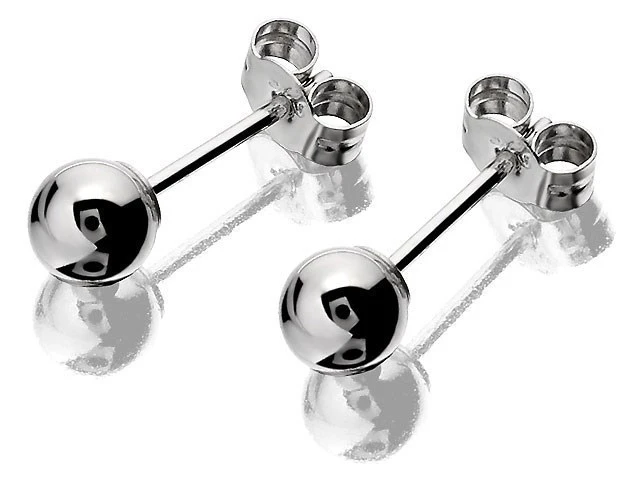 Dainty 4mm white gold ball stud earrings – can be worn alone, singly or alongside other stud earrings.
