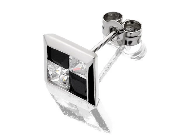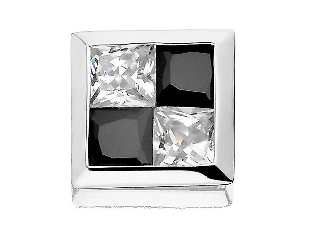 A chequerboard effect in black and white cubic zirconia for this 7mm diameter single stud earring.