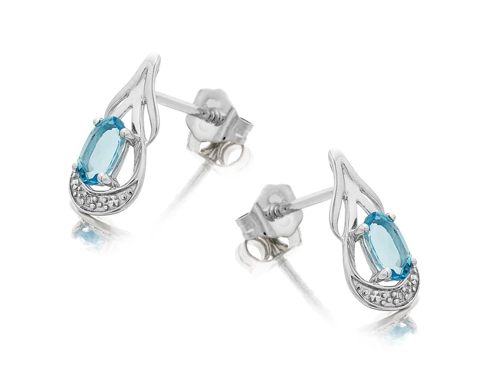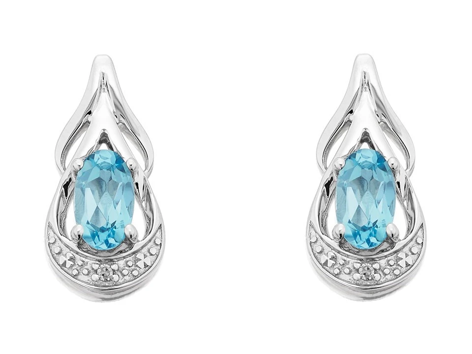 These lovely 9ct white gold teardrop stud earrings feature an oval blue topaz stone and an accent diamond to create a touch of sparkle. Measuring 12.2 x 5.6mm and secured with a butterfly fitting, these earrings will add a hint of colour to any outfit.
