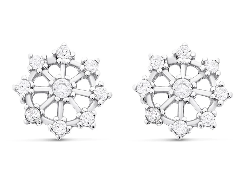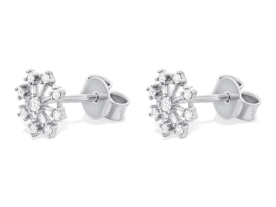 Add a touch of sparkle with these 9ct white gold cubic zirconia flower earrings. Measuring 6mm and secured with a butterfly fitting.
