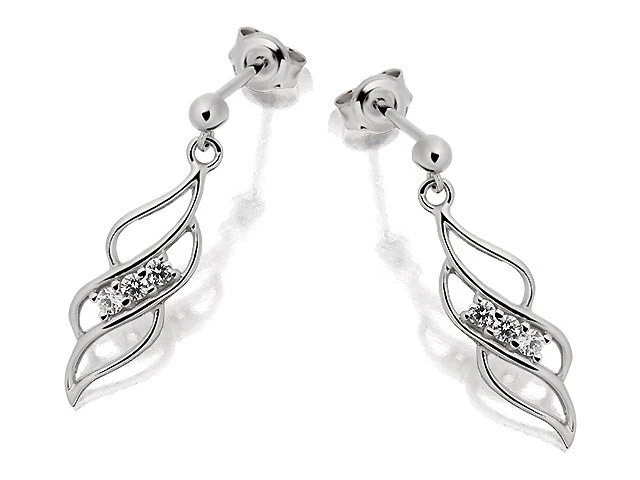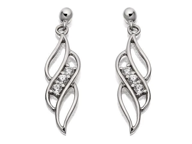 An open leaf design set in 9ct white gold, with three cubic zirconias in the centre, creating a 20mm drop.