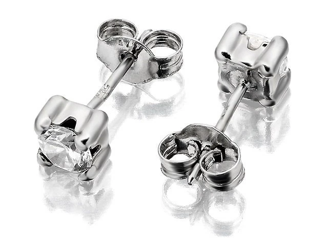 The white 4mm cubic zirconia solitaires are set in 9ct white gold, with four claws at the corners to give them that so much more expensive look.