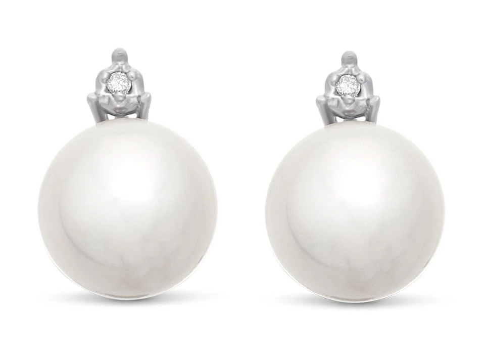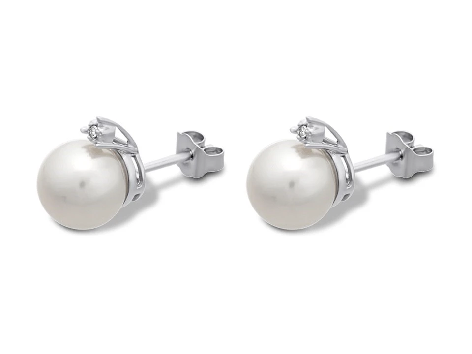 With a tiny diamond to add a touch of sparkle, these 9ct white gold stud earrings feature a classic 8mm cultured pearl to create a sophisticated look. Finished with white gold butterfly scrolls.