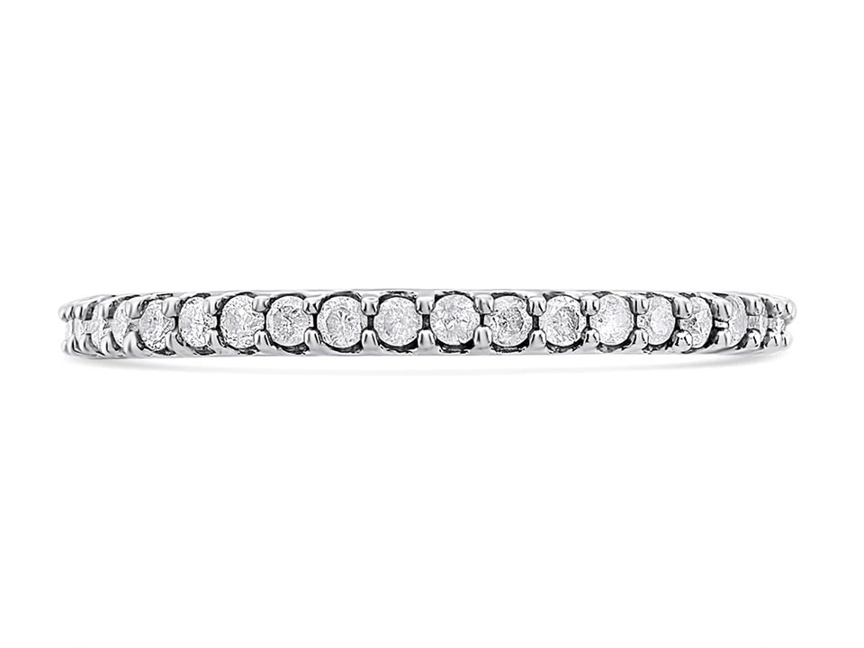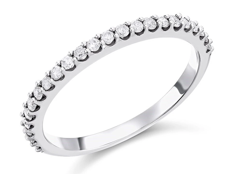A pretty white gold diamond half eternity ring featuring twenty three sparkling diamonds claw set along a 1mm band. 1/4ct (0.25ct) total diamond weight, available in selected sizes only.