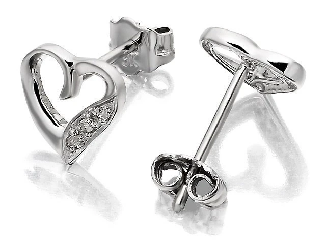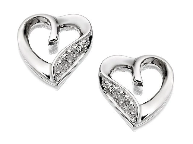 Diamond accents dot one side of these 7mm 9ct white gold open heart earrings, with a polished finish for the other side.