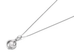 The contemporary design of this 9ct white gold pendant features a precious 30pt diamond solitaire in a wrap-around setting to create a modern piece of jewellery. Measuring 7mm and strung on an 18in/46cm fine chain, this is the perfect gift for someone special.