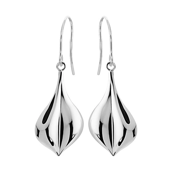 A contemporary shaped teardrop design makes these 9ct white gold hook wire earrings a great gift option. Total drop 33mm.