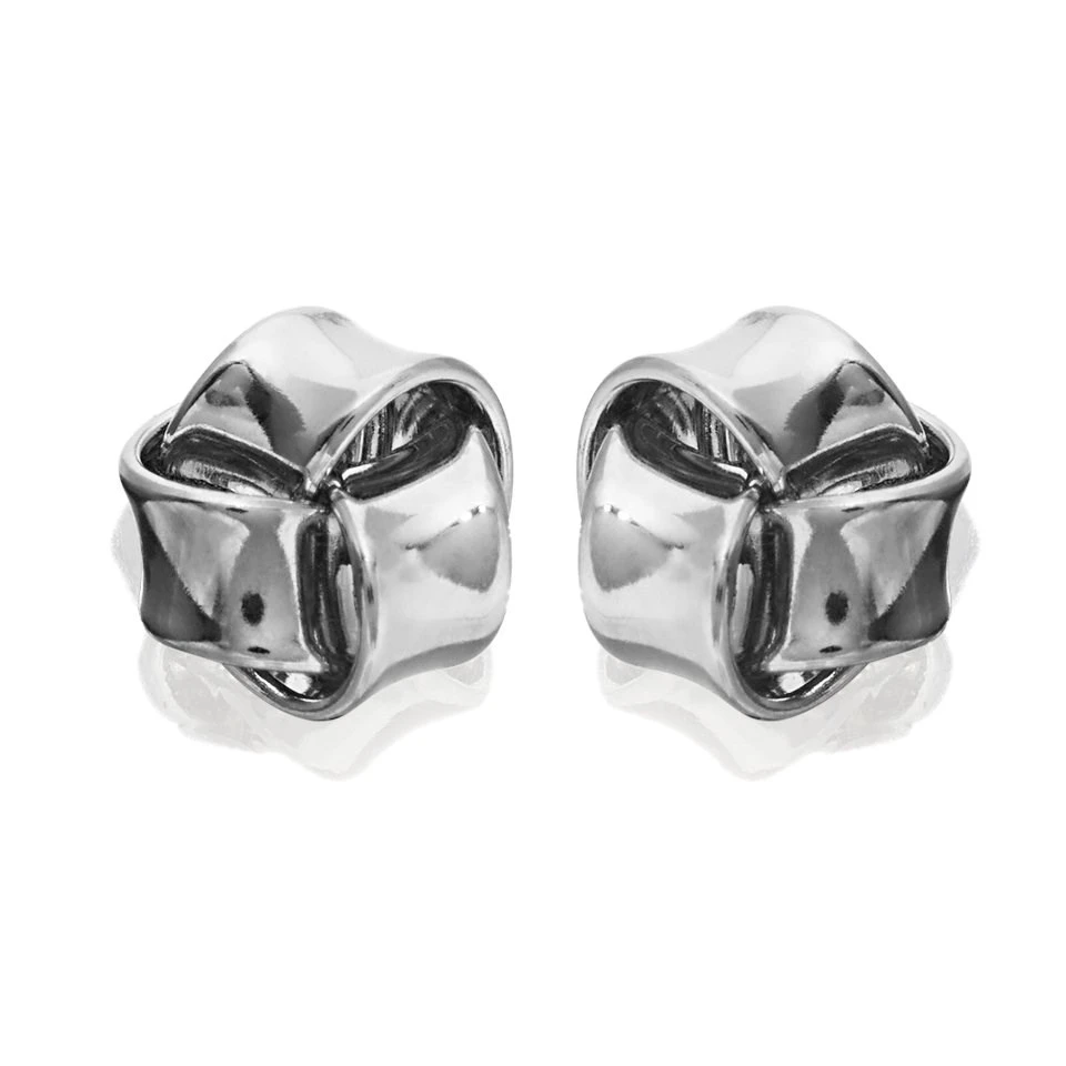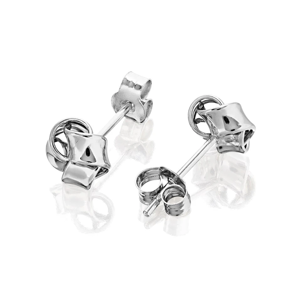 Classic 9ct white gold knot stud earrings. Always fashionable and secured with white gold butterfly fittings. 6mm wide.