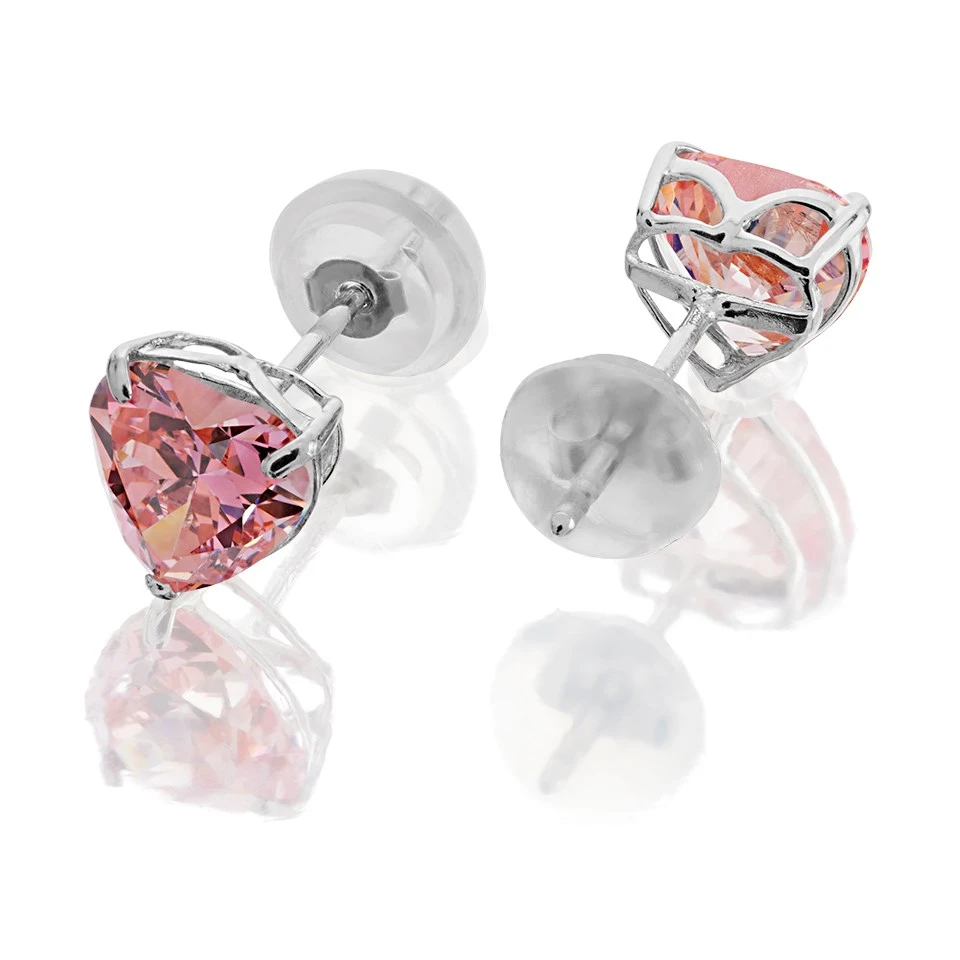 Romantic white gold stud earrings featuring 6mm pink cubic zirconia’s and white gold butterfly backs.