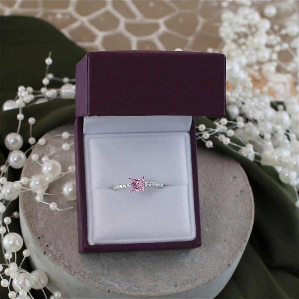 Be the first to review “9ct White Gold Pink Princess Cut Cubic Zirconia Ring – R6556” Cancel reply