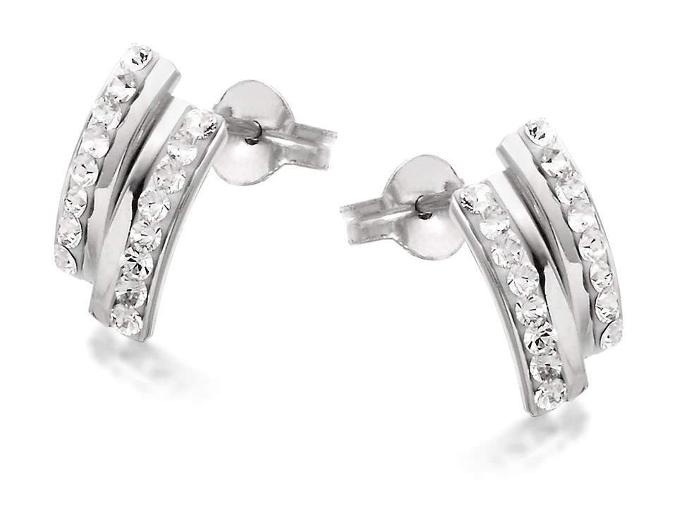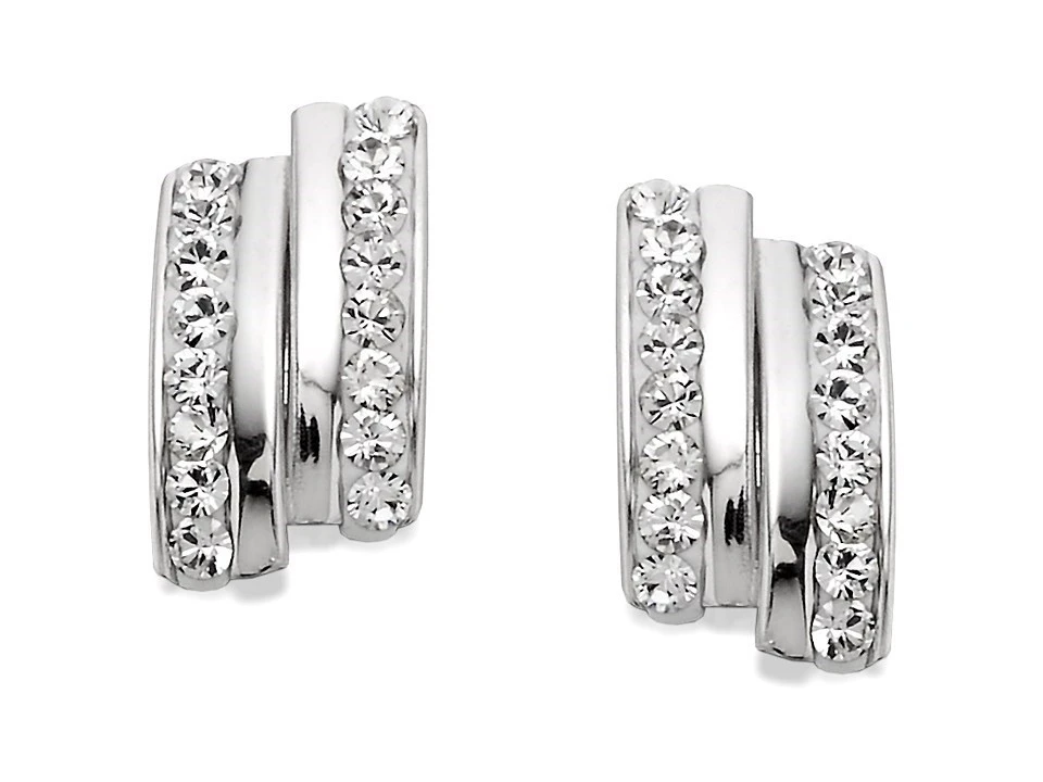 A spakly, offset design for these resin set crystal earrings created in white gold. Approximate size 6 x 10mm. To keep this piece of jewellery looking beautiful, we recommend you remove it before showering and swimming. Full care information can be found here.