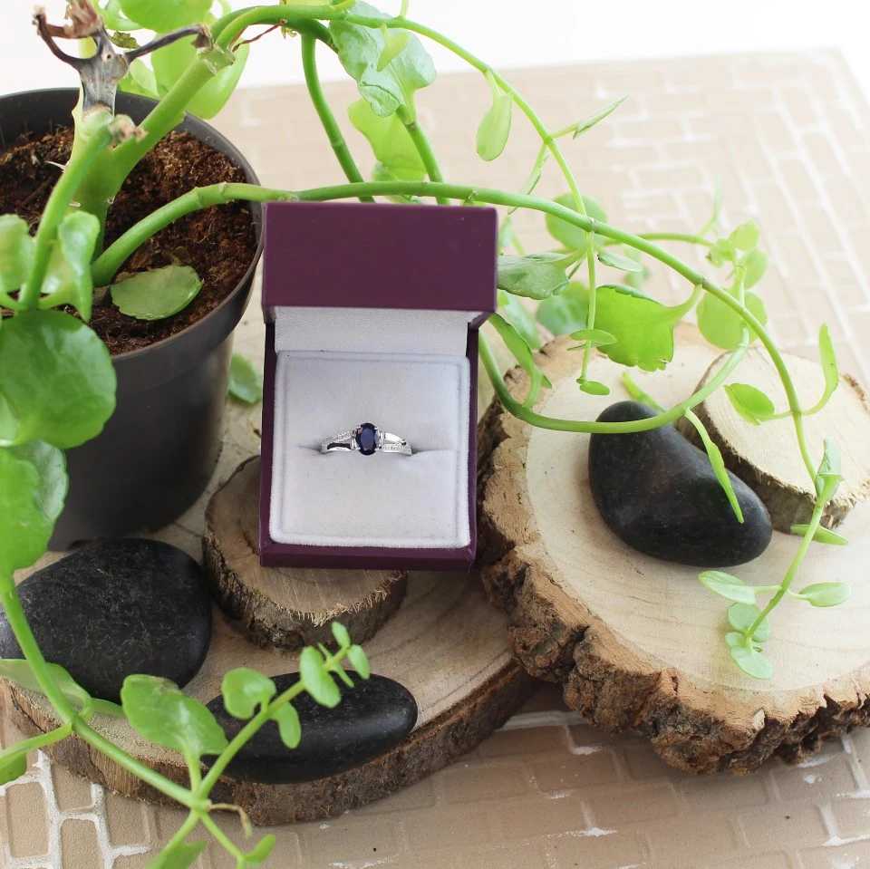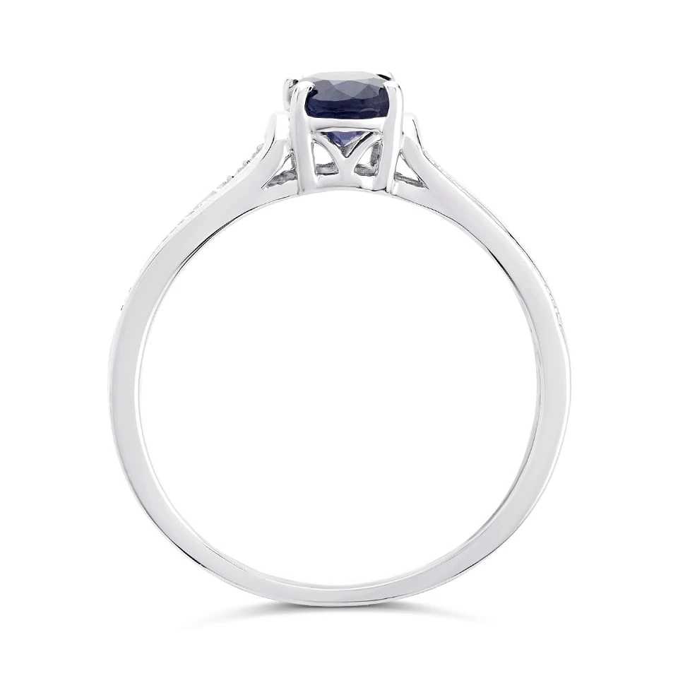 With diamond-set crossover shoulders, this 9ct white gold sapphire ring features a 7 x 5mm oval cut blue sapphire at the centre. Perfect as a gift for a September birthday.