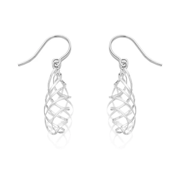 Lots of eye catching movement for these white gold swirl drop earrings, strung from comfortable hook wires. Total drop 38mm.