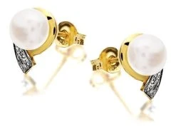9ct Gold Two Colour Diamond And Freshwater Pearl Earrings – 10mm – G0620