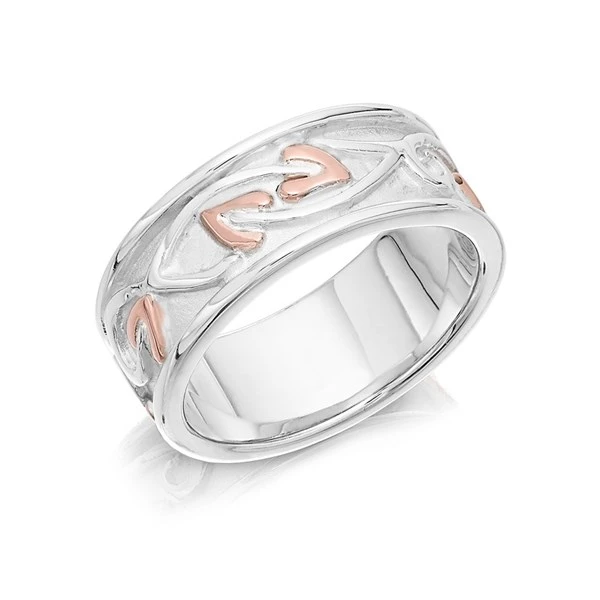 From the Clogau jewellery collection, this sterling silver and 9ct rose gold ring features the traditional Tree of Life pattern. Made with a touch of rare Welsh gold and packaged and delivered with Clogau paperwork and gift box. This 7mm band ring will certainly make an ideal gift choice.